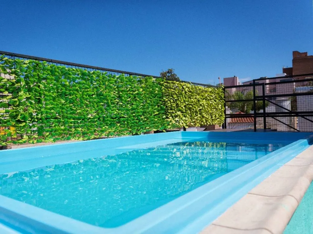 El hotel ofrece además un jardín cercado con piscina y solárium de uso compartido entre los huespedes.