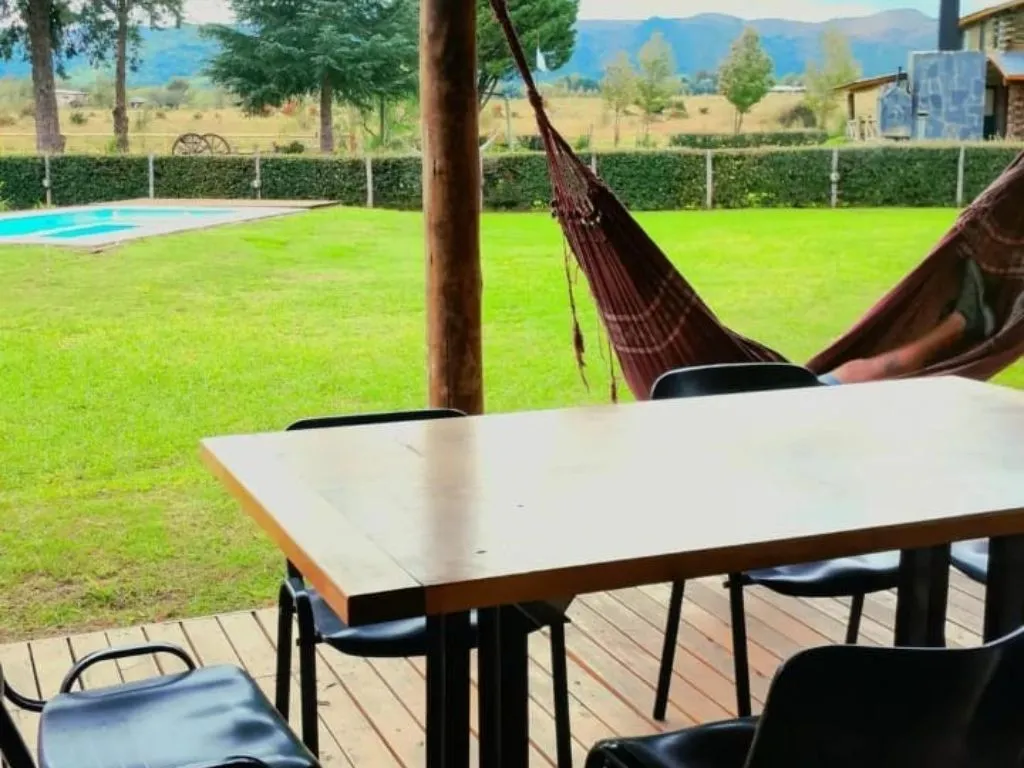 Each cabin includes a spacious living room with Smart TV, a fully equipped kitchen, a complete bathroom, and a covered gallery with barbecue grill, burners, and a wood-fired oven. The property also offers a traditional outdoor cooking setup (estaquero and disc grill) upon request, ideal for enjoying authentic Argentine-style meals.