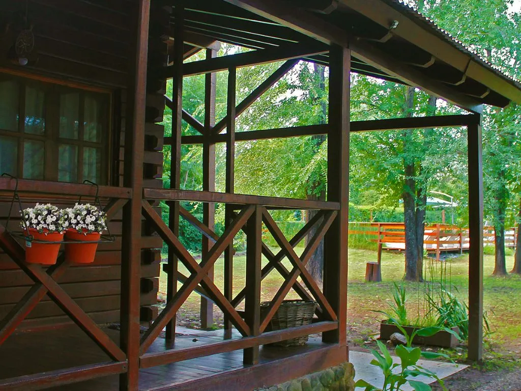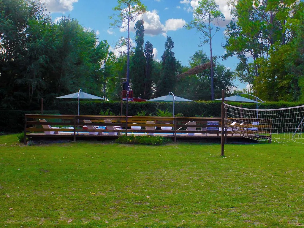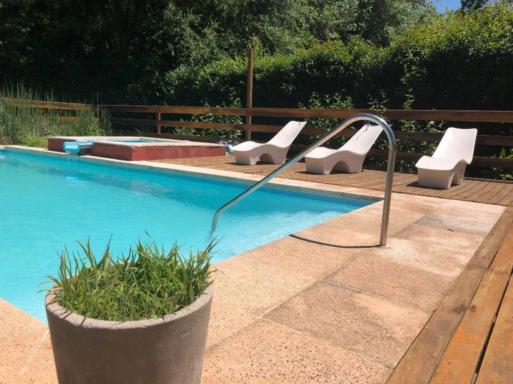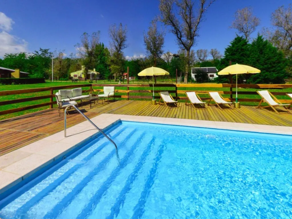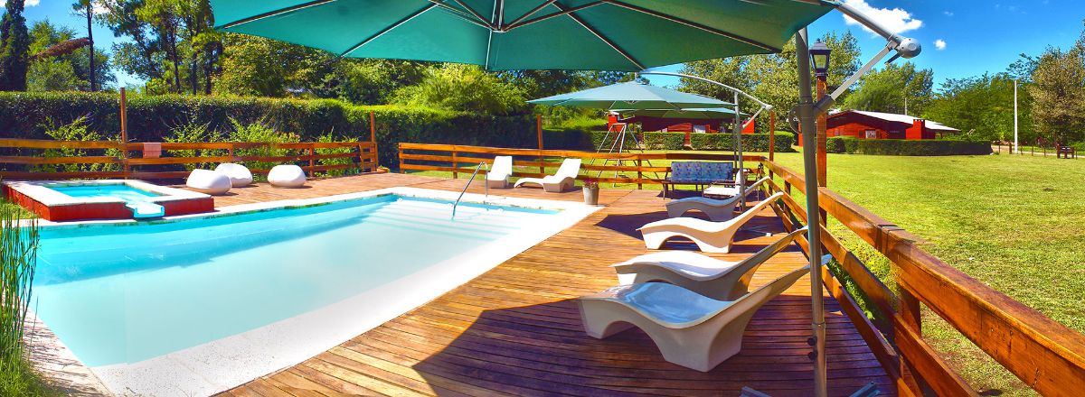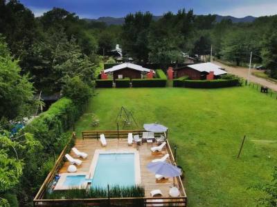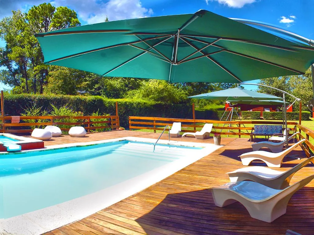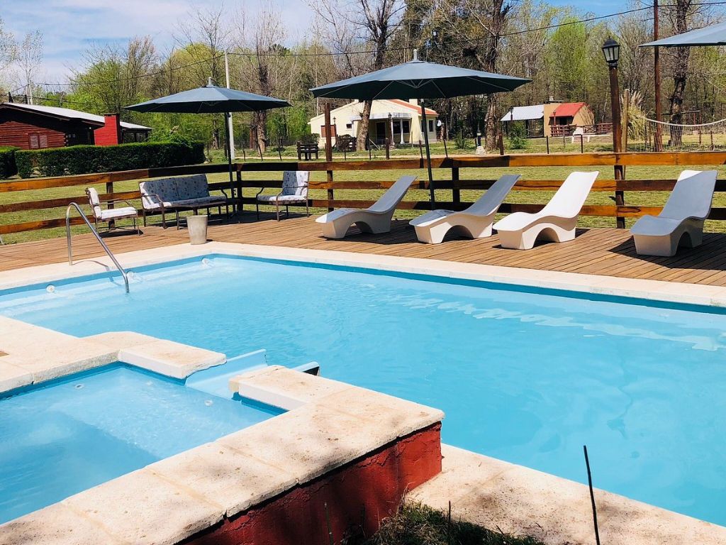 The cabins are built with quebracho colorado wood and are fully equipped to provide comfort. The property features a 4500 m² park with a swimming pool with jacuzzi, deck and loungers, a volleyball court, children’s playground, and wide green spaces.