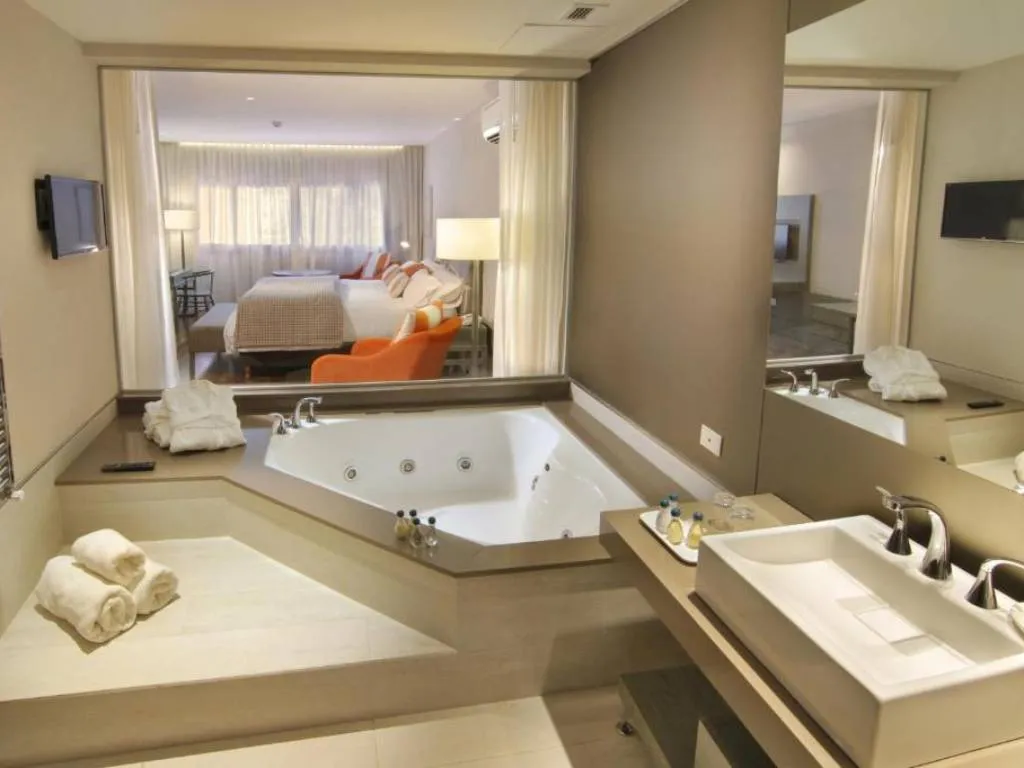 Complejo de hotel, spa & golf y cabañas muy completo. Con muy buena gastronomía en un maravilloso parque arbolado, lleno de paz y tranquilidad. Destacó las piscinas al aire libre, una de agua helada...