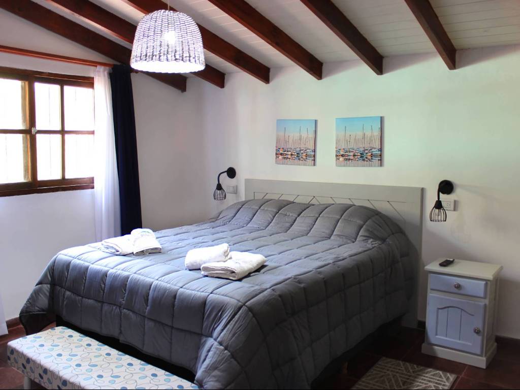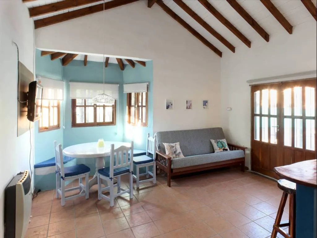 - Cabaña Rosa: Perfecta para parejas o pequeños grupos, esta cabaña tiene un dormitorio matrimonial con aire acondicionado y calefacción, un baño moderno y un futón en la sala de estar. Al igual que las demás, cuenta con cochera cubierta y pérgola con parrillero.