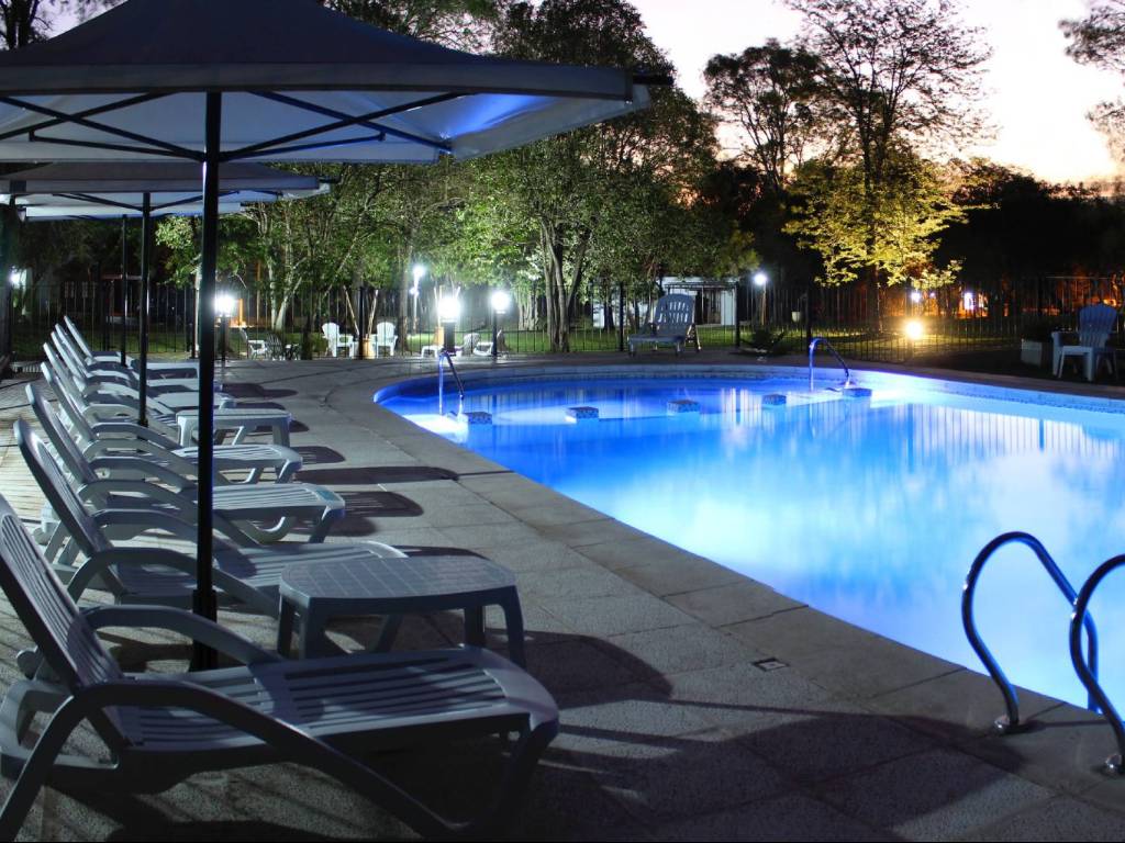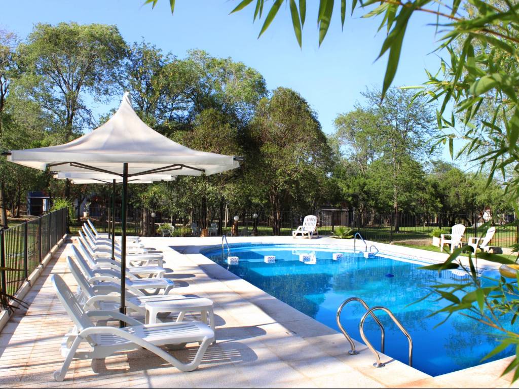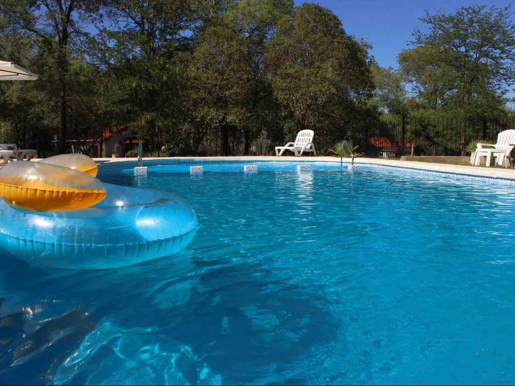 El complejo cuenta con una pileta de 13 x 6 metros, ideal para disfrutar del verano, ya que incluye rampa de acceso e iluminación nocturna, lo que la hace accesible y segura. Además, hay reposeras y sombrillas para descansar bajo el sol. Para los más pequeños, hay una zona de juegos infantiles, y para los adultos, un área de descanso en el centro del parque, perfecta para relajarse y disfrutar del paisaje.