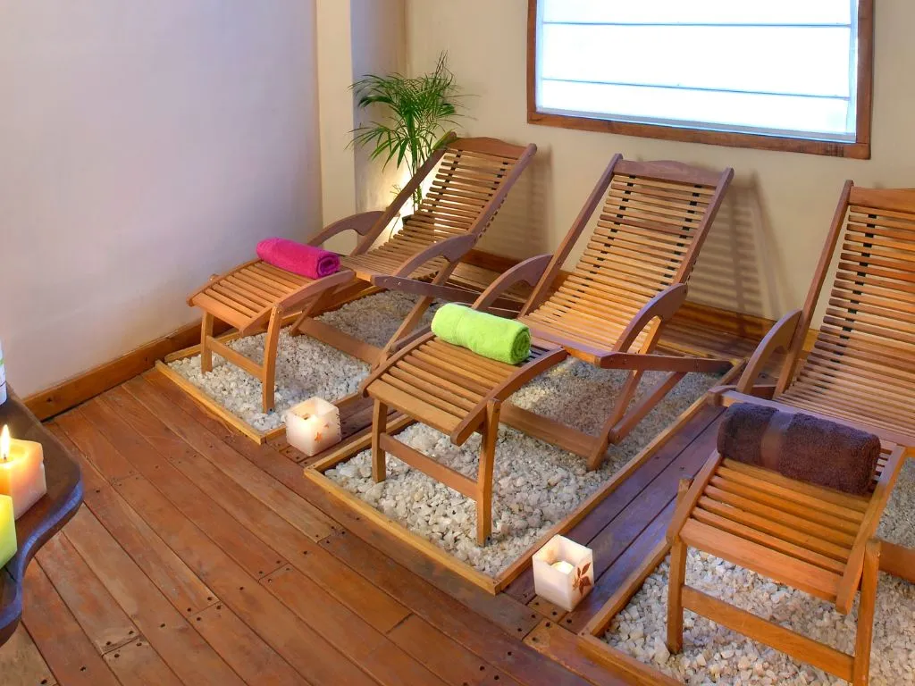 El alojamiento ofrece WiFi libre en todo el complejo, cocheras techadas con asadores individuales, juegos de mesa y sillas de jardín. Además, cuenta con un espacio de Spa & Masajes que incluye sala de masajes, sauna y ducha gallega, disponible con reserva previa. Para estadías de siete noches o más, se brinda servicio de limpieza intermedio y ropa blanca.