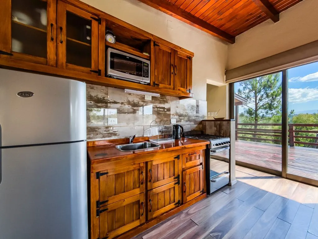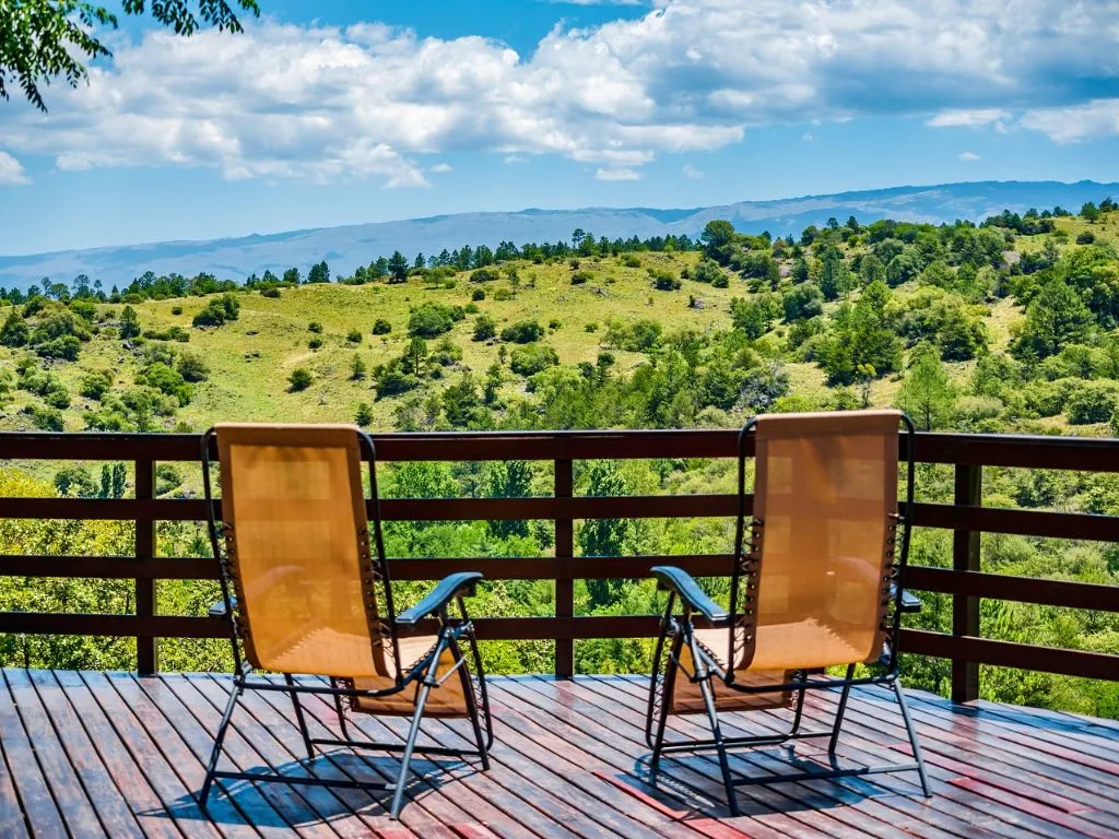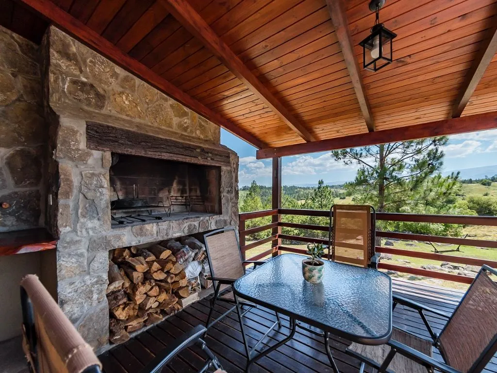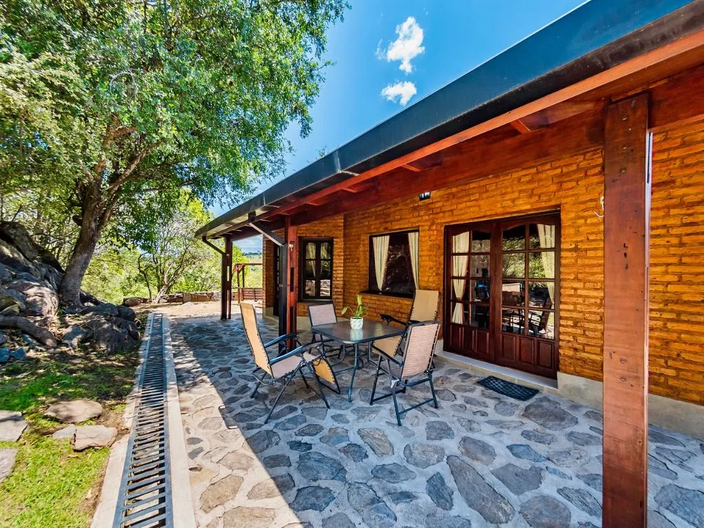 Los Grateau Mountain Cabin is located at one of the highest points of the property, offering open views of the Sierras Grandes and Yacanto. It accommodates 2 to 4 guests, with an optional fifth bed, and includes covered parking for one car. Its viewpoint and wooden balcony are ideal for enjoying both daytime scenery and star-filled nights.