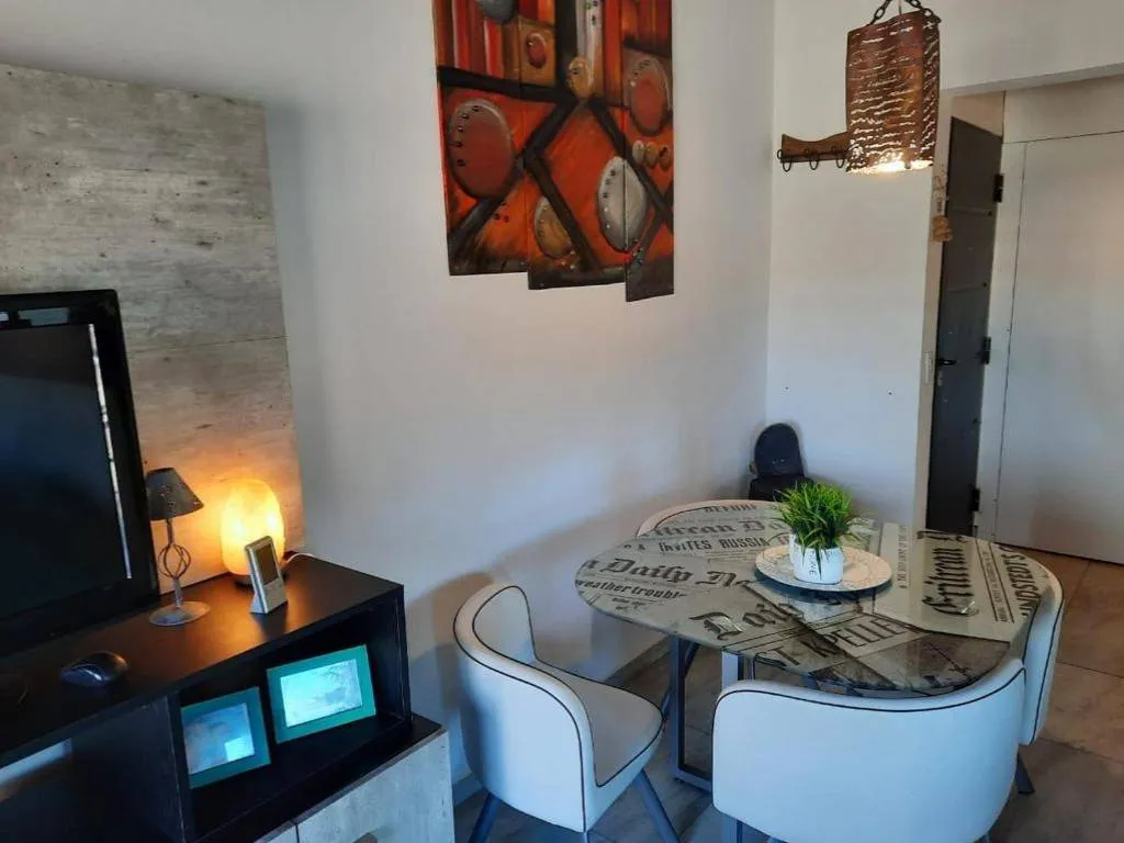 El departamento cuenta con cocina completa, comedor, 1 habitación con cama matrimonial, 2 sofá cama en el living, 1 baño, WiFi, DIRECTV. Calefaccionado por tiro balanceado, además cuenta con 2 aires acondicionados, uno el la habitación y otro en el living.