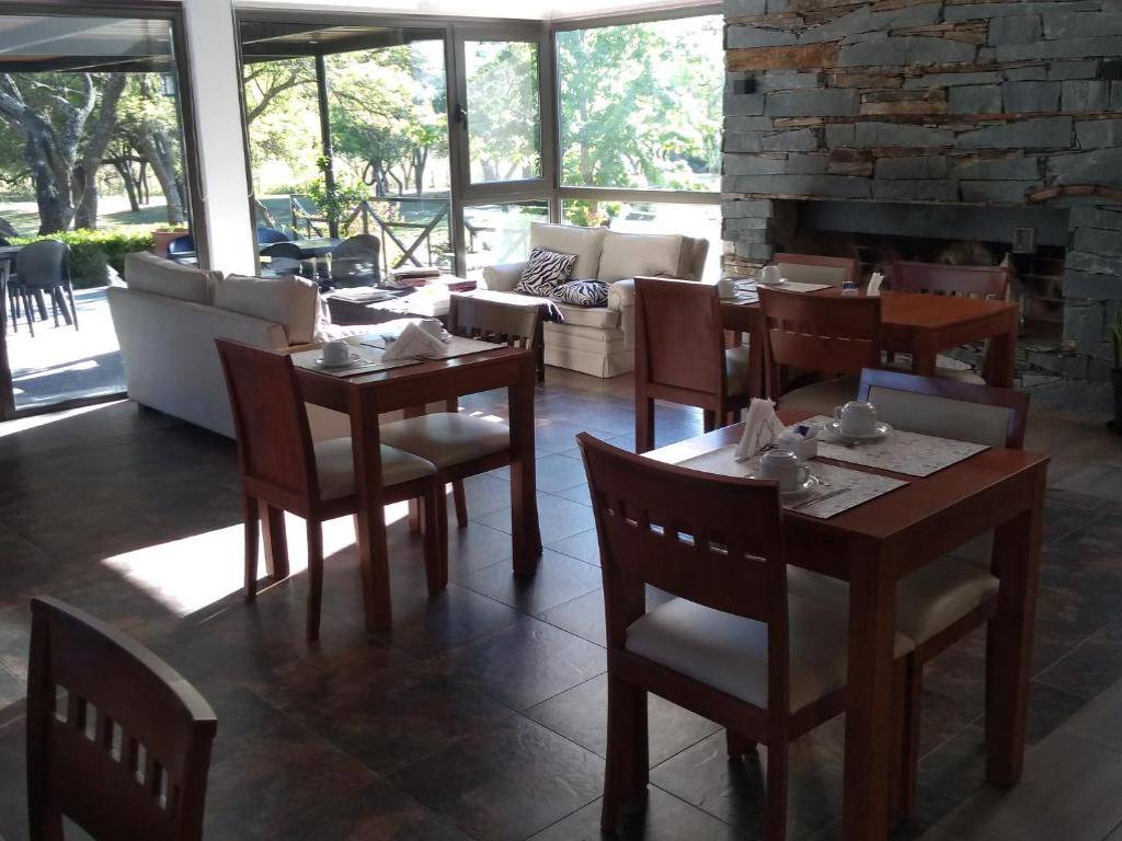 El desayuno continental es uno de los grandes atractivos, ofreciendo cafetería, panadería artesanal, tortas y budines caseros, mermeladas, quesos, dulces, cereales, fiambres, frutas y jugo de naranja fresco.