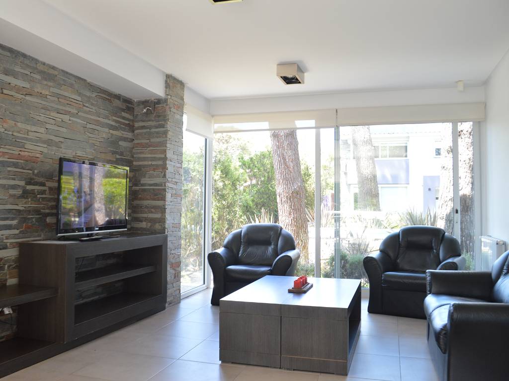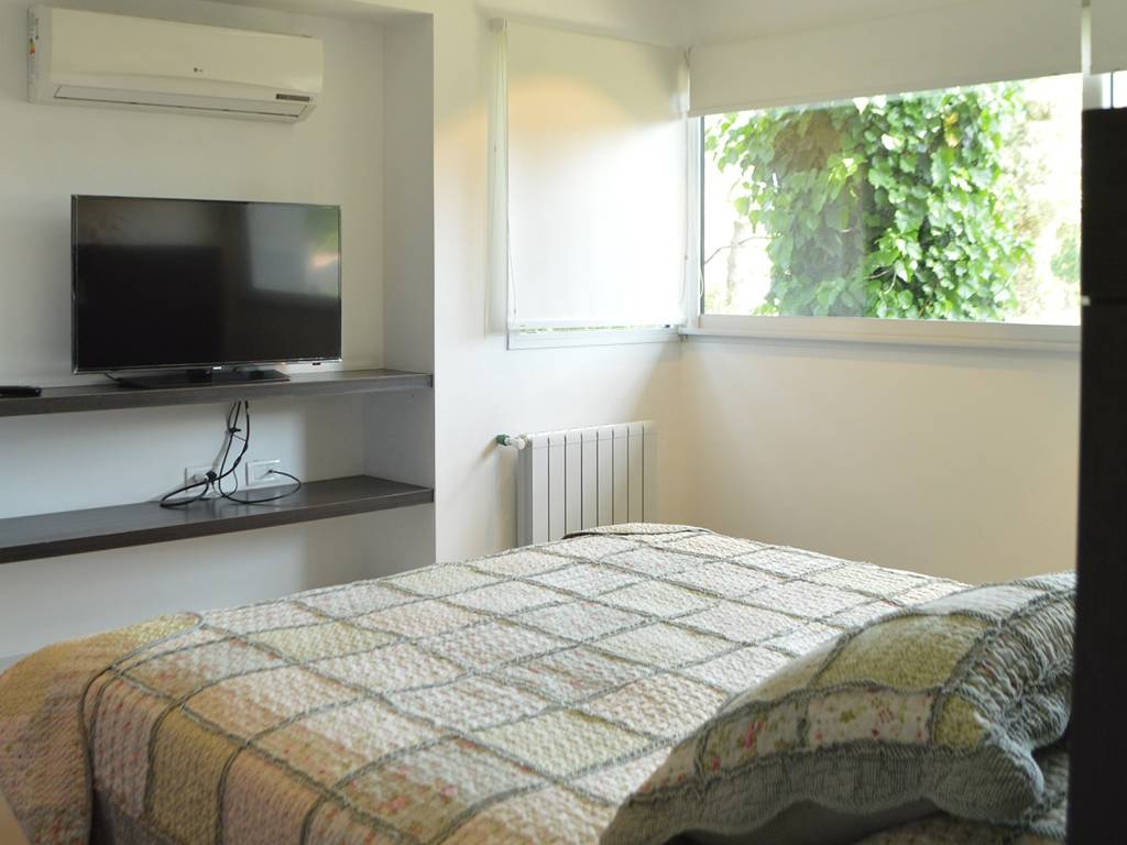 • Apartamentos 1 y 2: Unidades para 4 o 5 pasajeros en dos plantas. En planta baja se encuentra el living, comedor, cocina integrada con barra desayunadora y toilette. En planta alta hay un dormitorio matrimonial, un dormitorio con 2 camas de 1 plaza y un baño con hidromasaje y ante baño. Todas las unidades cuentan con parrilla privada, TV con cable, WIFI y acceso privado desde el garage propio. Los dormitorios principales ofrecen vistas espectaculares a la piscina y al parque del complejo.