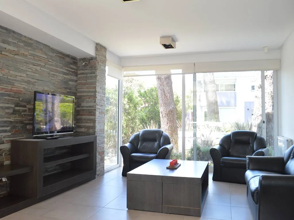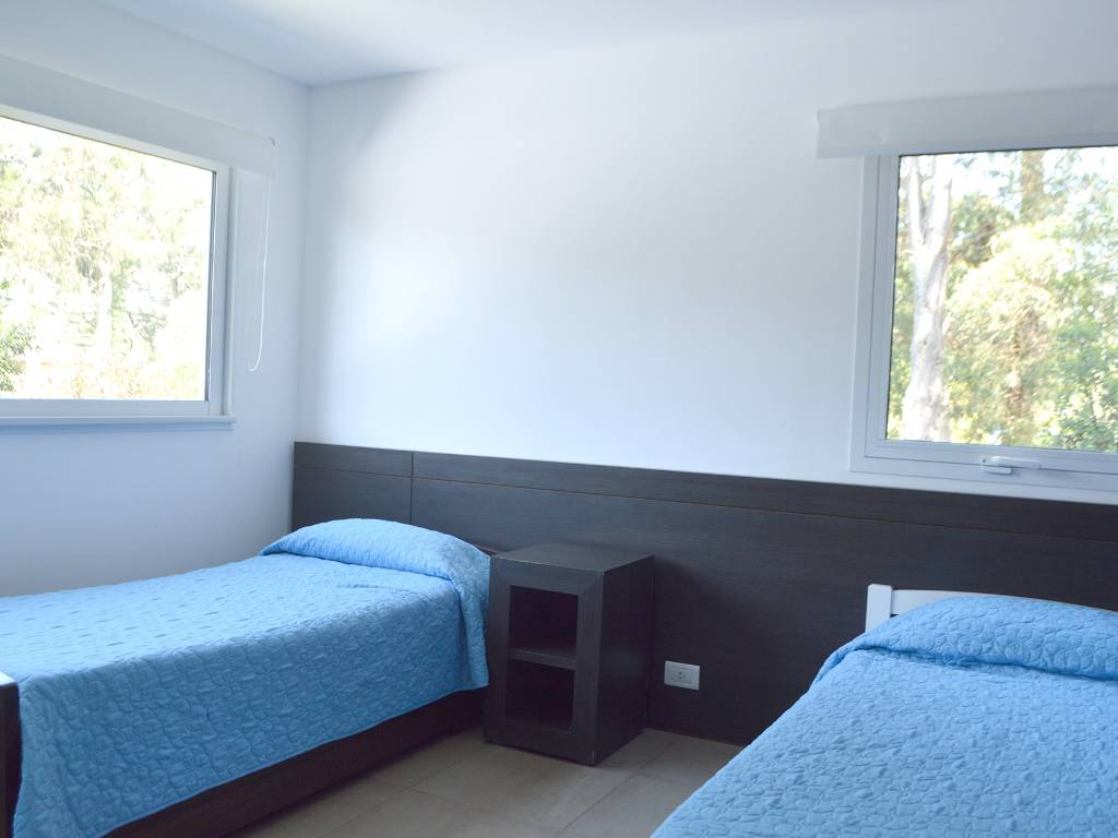 • Apartamentos 3 y 4: Configuración similar a los apartamentos 1 y 2, con living, comedor, cocina integrada, toilette en planta baja y dos dormitorios en planta alta. Incluyen parrilla privada, TV con cable, WIFI y garage privado, con vistas a la piscina y al parque.