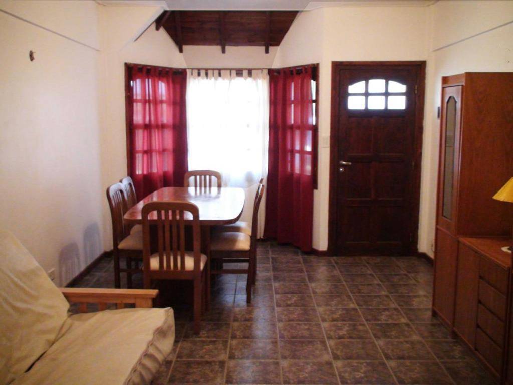 • En la planta baja: living comedor con mesa y seis sillas, futón convertible en cama de dos plazas, bargueño y televisor con TV por cable.