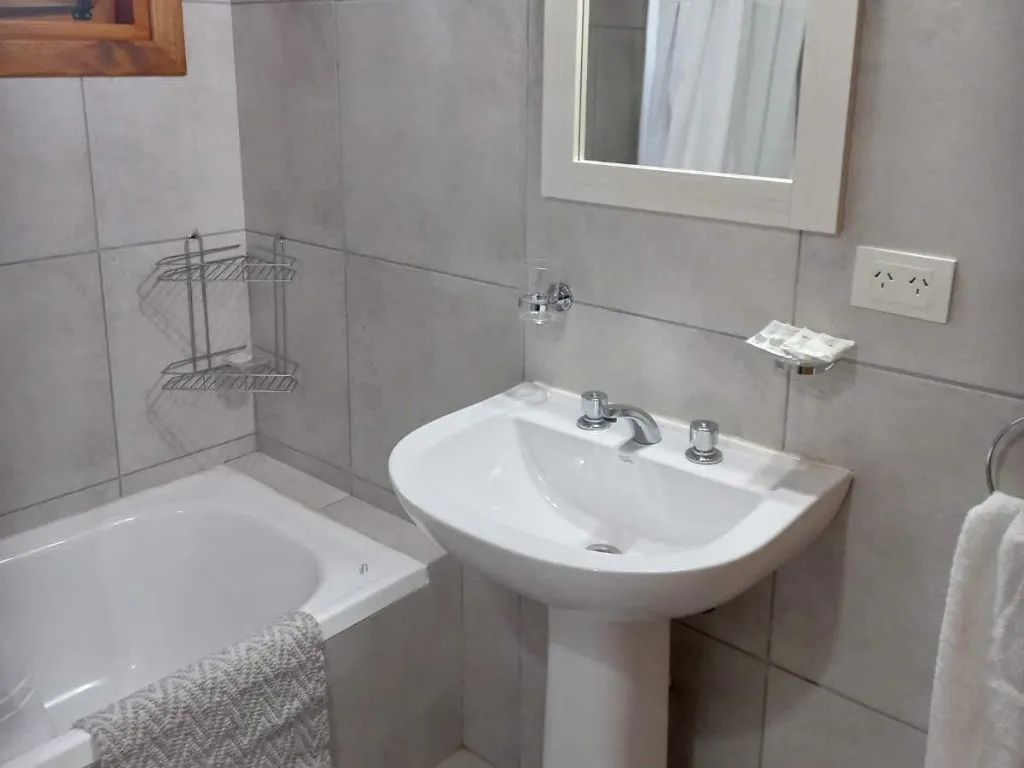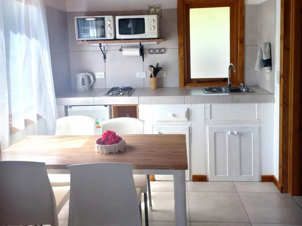El baño, completamente equipado, incluye una relajante bañera, ideal para revitalizarse tras un día de aventuras. La cocina, práctica y bien equipada, cuenta con heladera bajo mesada, anafe a gas, horno eléctrico y microondas, permitiendo desde preparar un desayuno rápido hasta cocinar una cena especial. Para mayor comodidad, se proporciona ropa de cama de excelente calidad, asegurando una estadía confortable.