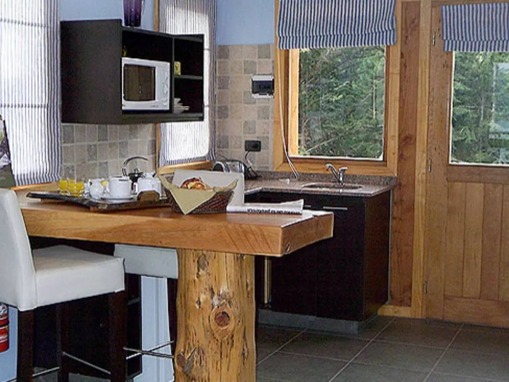 Los lofts del bosque están integrados al paisaje por amplios espacios vidriados y en un ambiente cálido y familiar, con un dormitorio amplio y sommier matrimonial king size y dos camas adicionales para niños junto al hogar a leña.