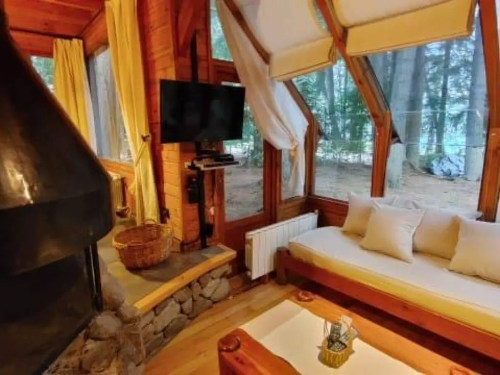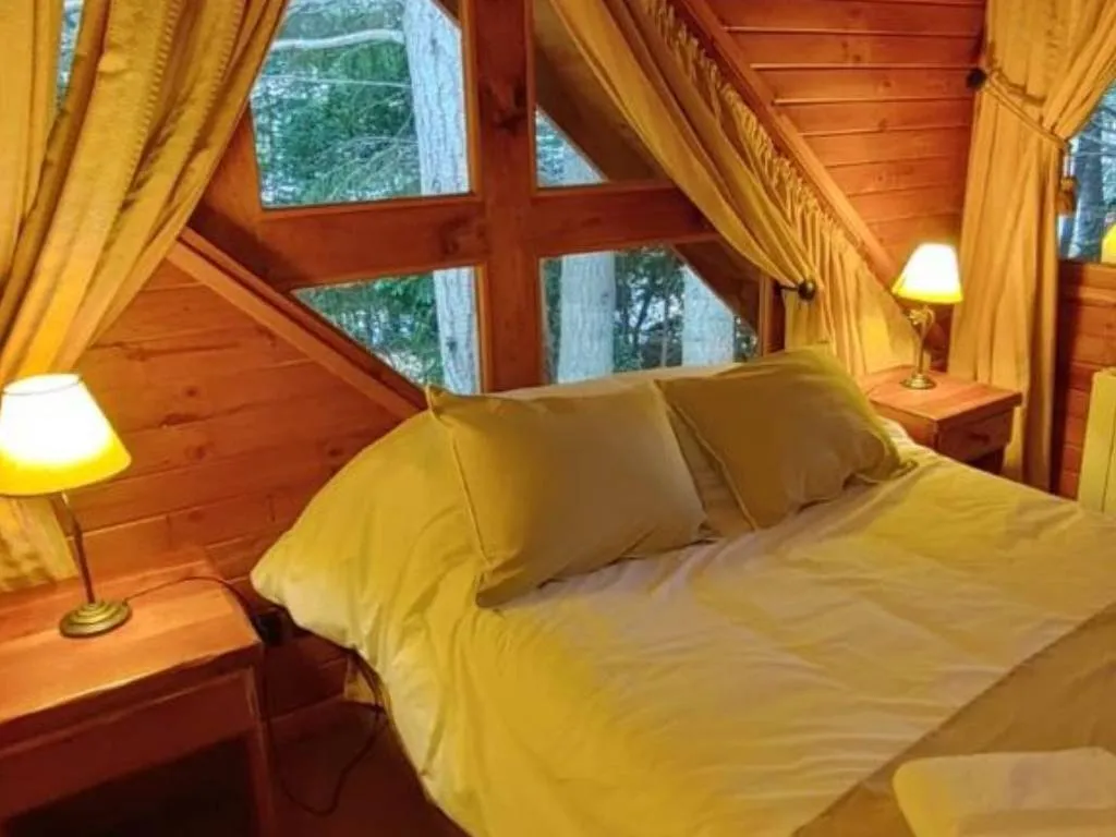 Framed by the exuberant nature of the Puerto Manzano Peninsula, Cabañas El Remanso invites its guests to immerse themselves in an environment of absolute tranquility. Surrounded by ancient trees that provide cool and comforting shade, this exclusive retreat offers private access to a sandy beach and calm waters just 50 meters away, ideal for enjoying moments of relaxation and contemplation next to Lake Nahuel Huapi.