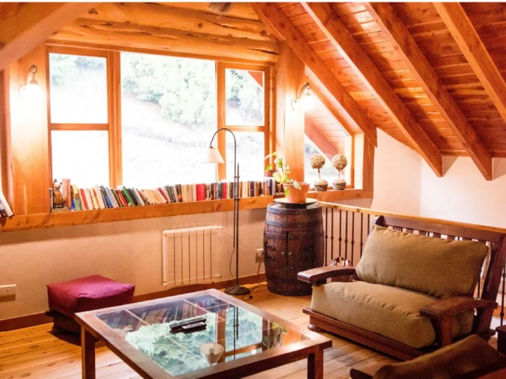 The aroma of burning wood in the living room fireplace invites you to readshare a family board game. Outside, a deck with solarium extends towards the horizon, providing an ideal space to enjoy the sun and the fresh forest breeze.