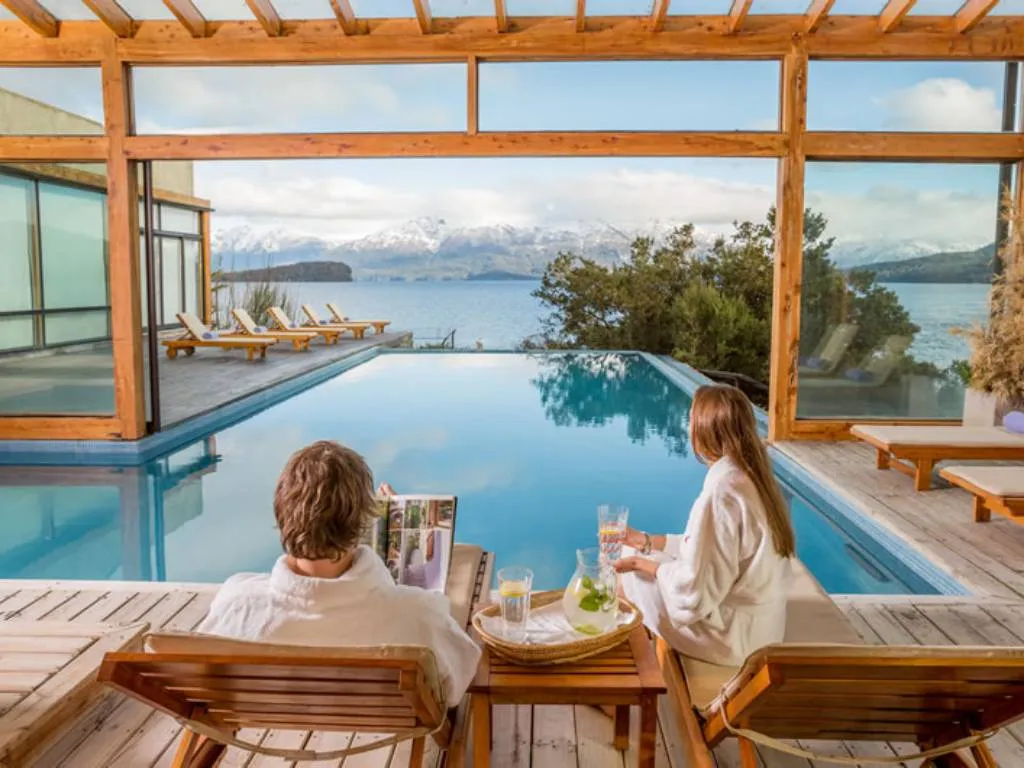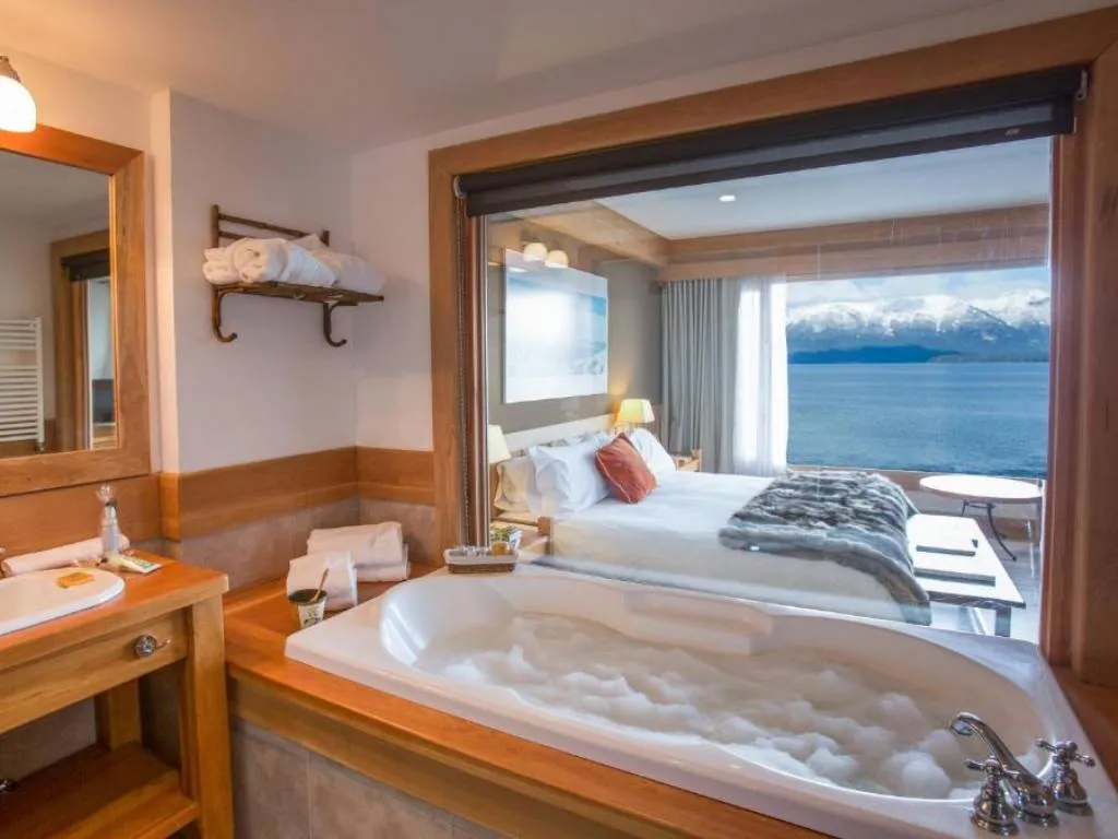 Desde los amplios ventanales de todas las habitaciones, el paisaje invita a despertar los sentidos ante la inmensidad del lago Nahuel Huapi, el energizante murmullo del río Correntoso y las imponentes cumbres nevadas de los Andes.