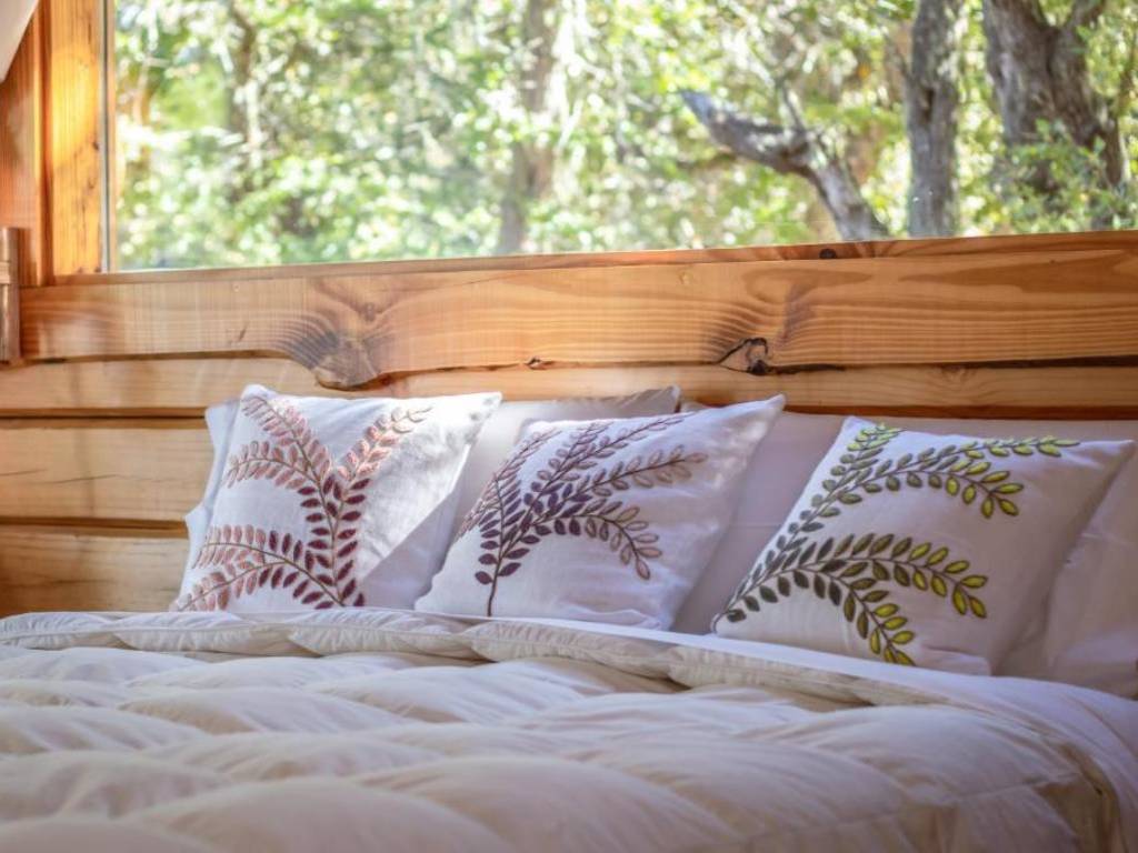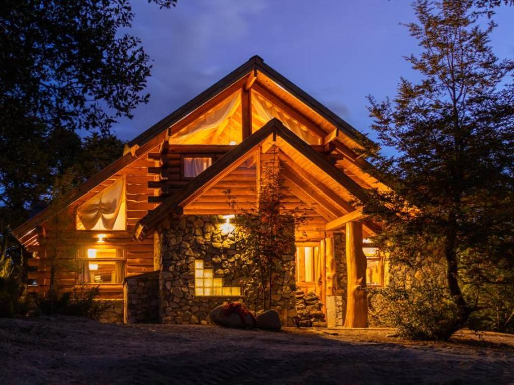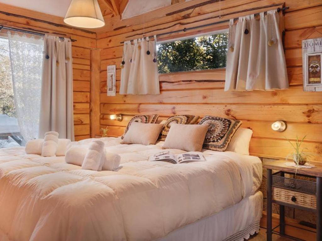 El diseño de cada cabaña destaca por su estilo patagónico, donde la fusión de madera y piedra de la región se complementa con un equipamiento moderno y cuidadosamente decorado, logrando un ambiente cálido y acogedor. Grandes ventanales permiten admirar las espectaculares vistas al lago, los cerros circundantes y la belleza del bosque, invitando a los huéspedes a sentirse parte de este entorno natural tan singular.