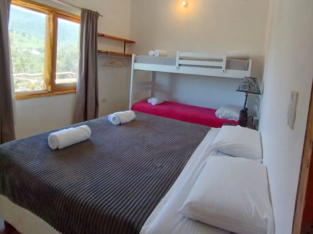 • Departamento 2: capacidad máxima para 6 adultos y 2 niños, con 1 cama matrimonial, 2 sommier individuales, 1 sommier dual y 1 cucheta, ideal para familias numerosas o grupos.