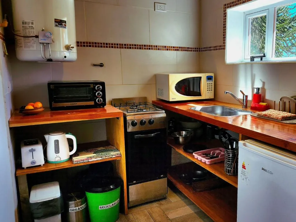 All units are equipped with electricity, gas zeppelin for the stove and water heater, pellet heating (except one studio with wood heating), bed linen, dishes, microwave, conventional stove and electric oven, electric kettle, toaster, and Smart TV. They also feature a semi-covered access area with sofas for relaxation and recreation.