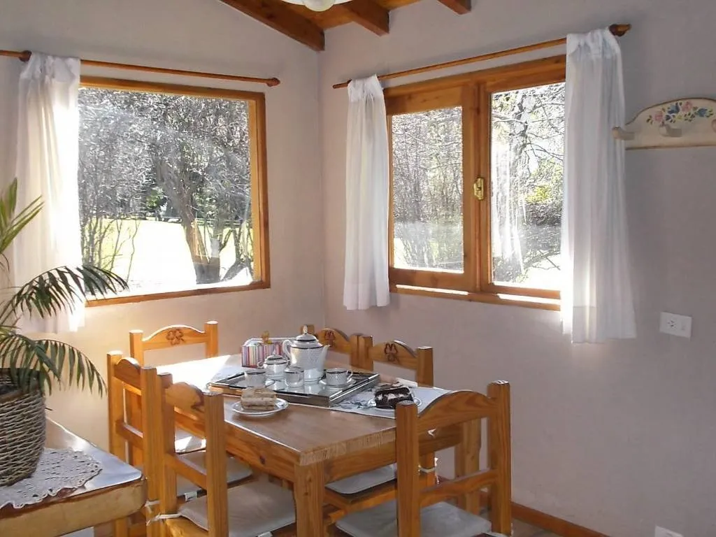 El Nogal: 1 unidad con capacidad para 4 personas. Posee dos habitaciones que pueden ser convertidas en dos matrimoniales con camas Queen, baño con ducha escocesa, living comedor, estufa de combustión lenta, calefacción, cocina completa, parrilla y mesa exterior con iluminación, parque privado, techo cubierto para guardar el vehículo, reposeras de jardín y ropa blanca.