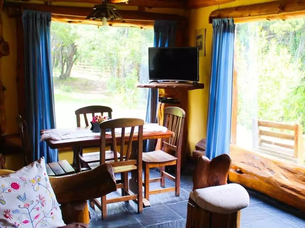 Nos alojamos en la cabaña Los Ñires....nueva, muy cómoda, con una vista directo a la montaña. Con un deck para mirar el atardecer. Tomar mates, o simplemente respirar. Lo destacable es que no hay...