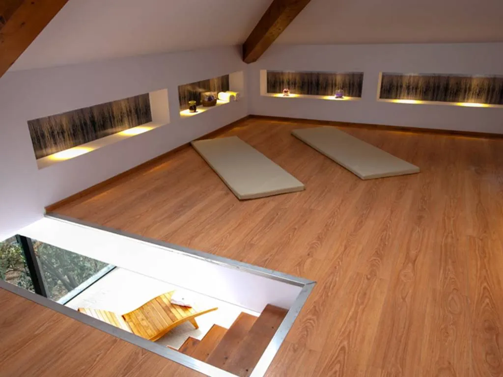 Among its outstanding facilities are a heated swimming pool and a complete spa that includes a massage room, sauna and relaxation room. These spaces are designed to offer moments of rest and wellness, complementing the experience of connection with nature.
