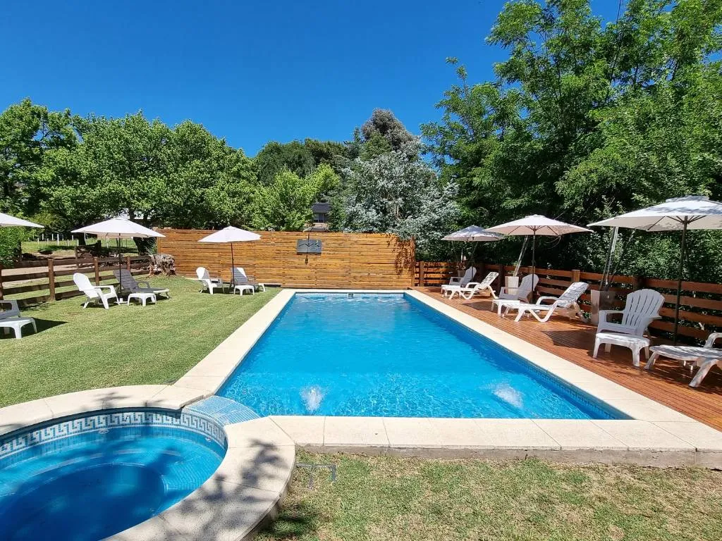 El complejo cuenta con una piscina al aire libre, ideal para refrescarse en los días cálidos y disfrutar del sol. También hay un solárium con reposeras para tomar sol y un jacuzzi exterior para relajarse bajo las estrellas.